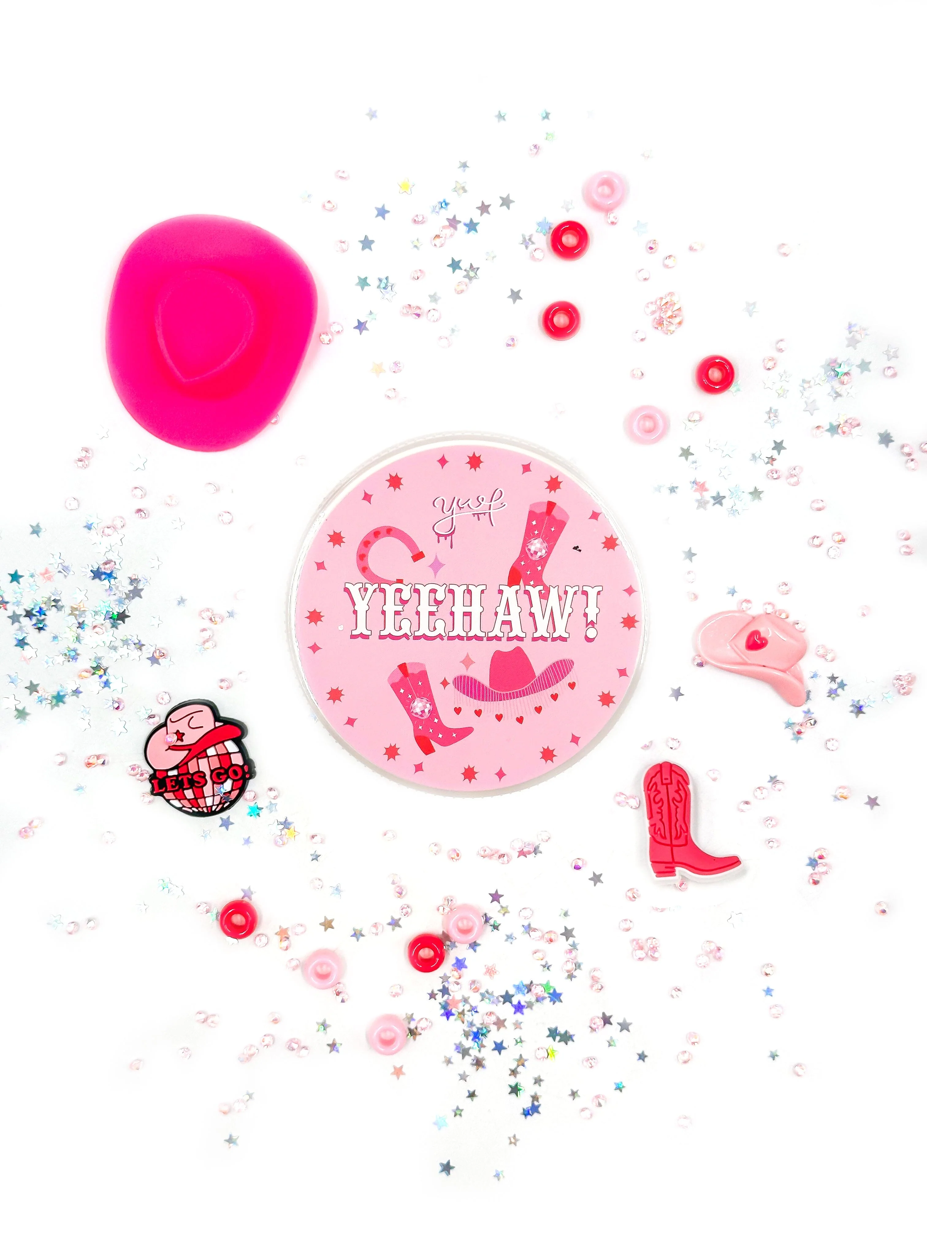 Disco Cowgirl is a sparkly bubblegum-scented gel slime that shimmers with iridescent glitter. Mix in pink pony beads, a cowgirl hat resin, and shiny silver stars for the ultimate rodeo sparkle.